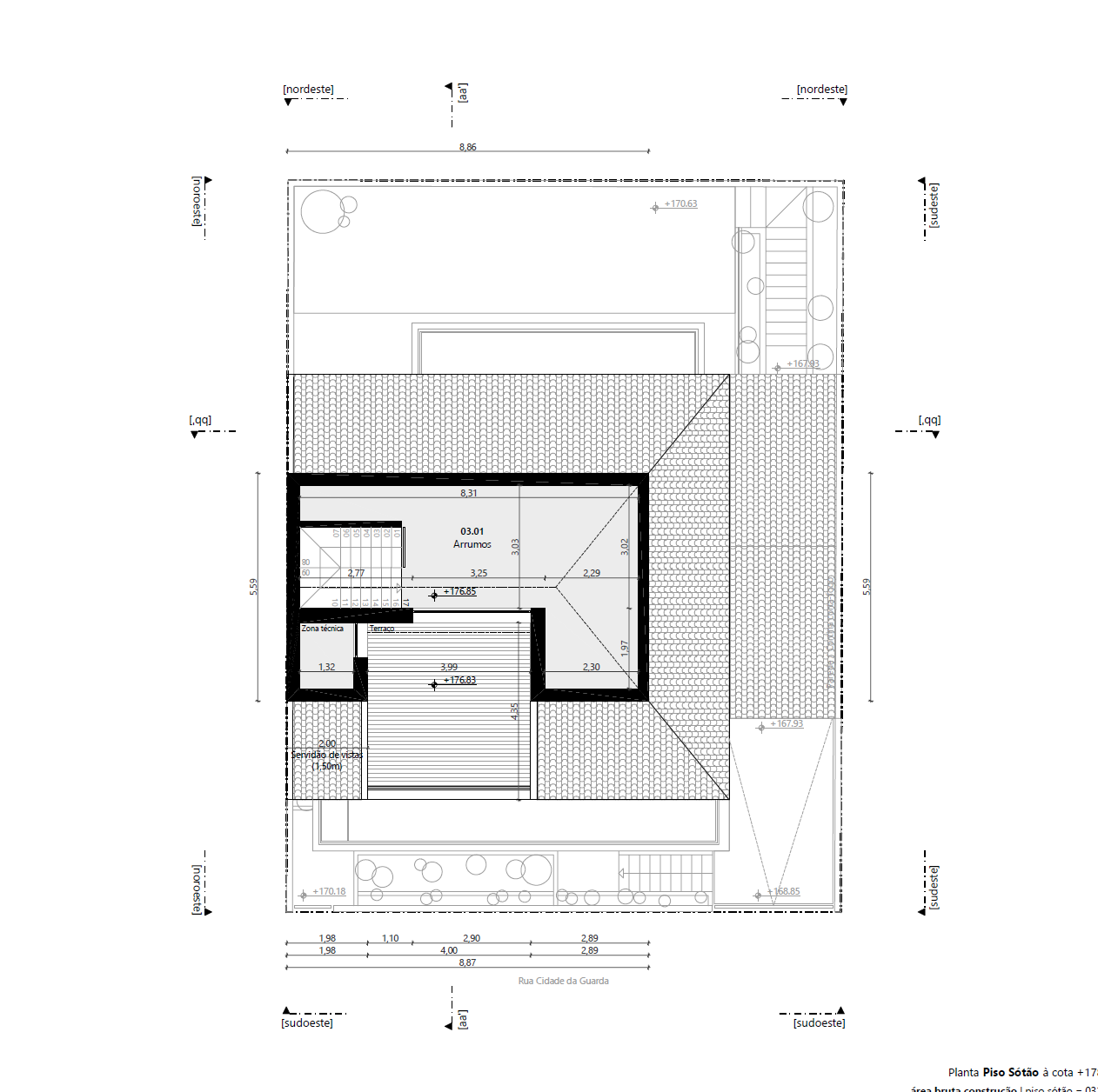 No Piso -1 encontra a garagem que oferece espaço amplo para estacionamento e Sala para arrumos.